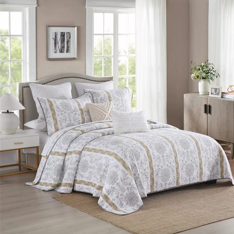 New barato preço algodão King Size cinza amarelo branco listrado Paisley colcha colcha conjuntos