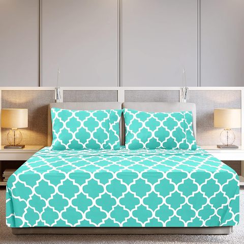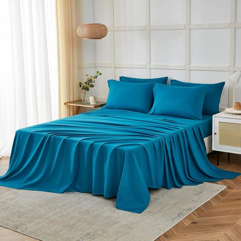 Teal Vua Kích thước Sheets Set 6 mảnh nhăn phai kháng tấm ga trải giường sợi nhỏ thiết lập