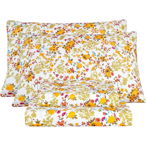Thiết Kế Mới Sâu Túi 100% Sợi Nhỏ Bộ Đồ Giường Tấm 4 Mảnh Nữ Hoàng Kích Thước Màu Vàng Hoa Tấm Thiết Lập